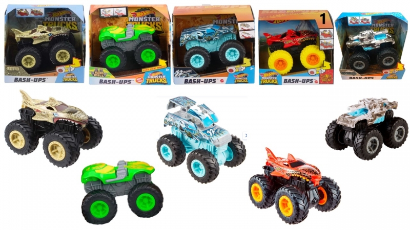 Hot Wheels Monster Trucks Bash-Ups de Mattel ¡Acelera y aplasta! ¡Los Monster Trucks son camiones de ruedas gigantes hechos especialmente para batallas épicas entre ellos! Con potentes motores de fricción y acción de fricción, decoración realista ¡son monstruosos donde quiera que vayan! No hay obstáculo que los Monster no sean capaces de destruir. ¡A los niños les encantará! Dimensiones del Packaging: 10 x 16 x 13 cms aprox. No requiere pilas.