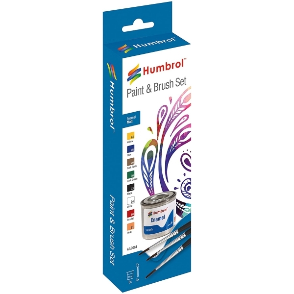 HUMBROL AA9061 ENAMEL PAINT AND BRUSH MATT SET