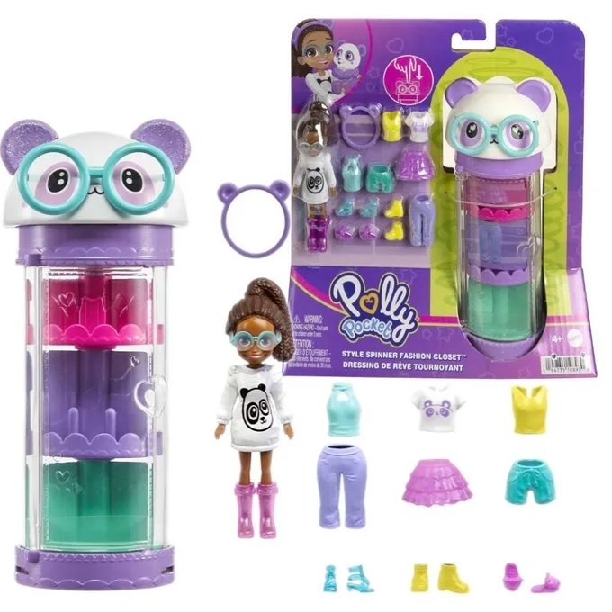 MATTEL HKW04 POLLY POCKET STYLE SPINNER FASHION CLOSET PANDA