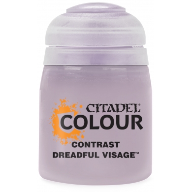 Dreadful Visage es una pintura violeta claro y versátil que te permite colorear rápidamente tus modelos de forma hermosa. La pintura Citadel Contrast es un tipo revolucionario de pintura que, cuando se aplica sobre una capa base clara y contrastante, puede aplicar simultáneamente un color base vibrante y sombreado realista a tu modelo. Todos los tipos de pinturas Citadel son pinturas acrílicas a base de agua no tóxicas diseñadas para usar en miniaturas de plástico, metal y resina.