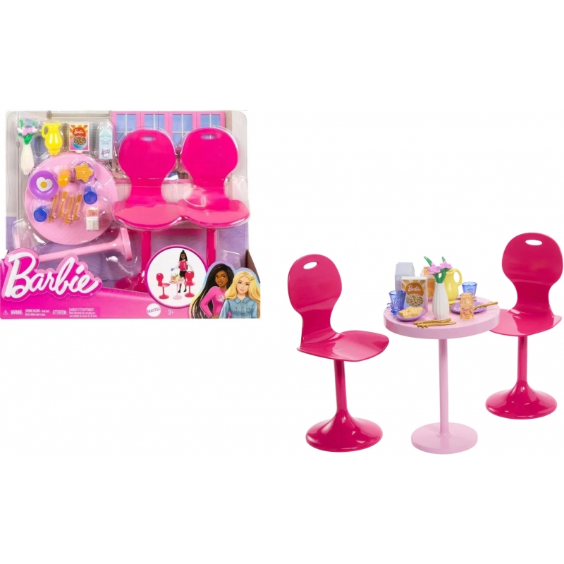 Barbie piezas de narración, Sumérgete en los sets de accesorios de Barbie una aventura completa en un paquete. Este conjunto incluye una mesa rosa con dos sillas, cubiertos, vasos y un delicioso festín para el desayuno: jugo, waffles, cereal y más. Prepara la mesa para un desayuno especial y deja volar la imaginación en conversaciones matutinas. Medidas: 27x20x9 cm. Este regalo no requiere pilas.