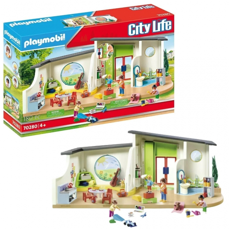 Cuando los pequeños saltan de la cama a primera hora de la mañana, lo tienen claro: ¡Hurra, la nueva Guardería Arcoíris ha abierto! A partir de ahora, podrás jugar todo el día mientras tus padres están trabajando. Entonces, la educadora de la guardería PLAYMOBIL ya está preparando el desayuno para los niños. Después de la comida común se limpian a fondo los dientes en la zona sanitaria y después se pinta, canta y también se descansa. Los juegos de colores brillantes, las figuras diseñadas con cariño y una amplia gama de accesorios hacen que la vida cotidiana del jardín de infancia sea una experiencia divertida.