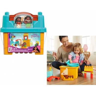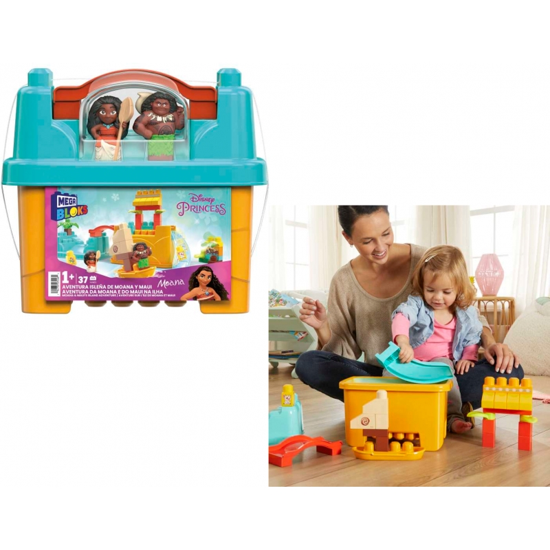 Mega Bloks Disney Aventura isleña de Moana y Maui, Ahora, tu niño (a) constructor puede ver qué tan lejos llegará con esta cubeta con tema de Moana, inspirada en Moana de Disney. Este set de construcción viene con 32 bloques de construcción grandes y piezas especiales, como un bote, un puente y un tobogán. Los niños (as) pueden construir una aventura isleña y enviar a Moana y Maui por el tobogán. Incluso pueden usar la cubeta y la tapa como superficie de construcción. Cuando termine la hora de jugar, puedes guardar todo de forma ordenada dentro de la cubeta, para que sea más fácil limpiar. Estos bloques perfectos para las manitas de tu niño (a) son fáciles de agarrar y apilar, lo que promueve el desarrollo de la motricidad fina, la creatividad y la imaginación. Este regalo no requiere pilas.