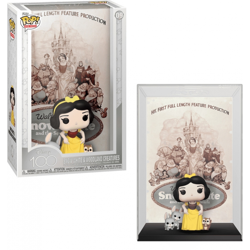 En su huida de la Reina Malvada, Blancanieves y los siete enanitos se encuentra en un lugar extraño, ¡rodeada de criaturas amistosas! Celebra el centenario de Disney con este póster de Blancanieves y los siete enanitos que presenta muchos de los adorables personajes de la película. Ayuda a Blancanieves y los siete enanitos a encontrar su camino sano y salvo hacia tu colección de Disney. Las figuras Pop! se adhieren al fondo para garantizar la integridad de la escena y facilitar su exhibición. Dimensiones aproximadas del estuche protector: 11” de ancho x 17” de alto x 5,5” de profundidad