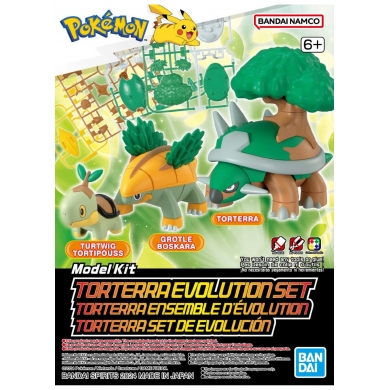 Este sencillo kit de plástico con ajuste a presión permite a los modelistas construir a Pikachu y tres formas de evolución de Torterra, que consisten en Torterra, Grotle y Turtwig.