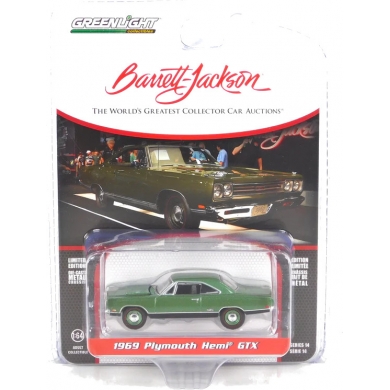 Ir al carroGREENLIGHT 37310B 1:64 BARRETT - JACKSON SERIES 14 1969 PLYMOUTH HEMI GTX F8 IVY GREEN METALLIC ( PALM BEACH 2023 )