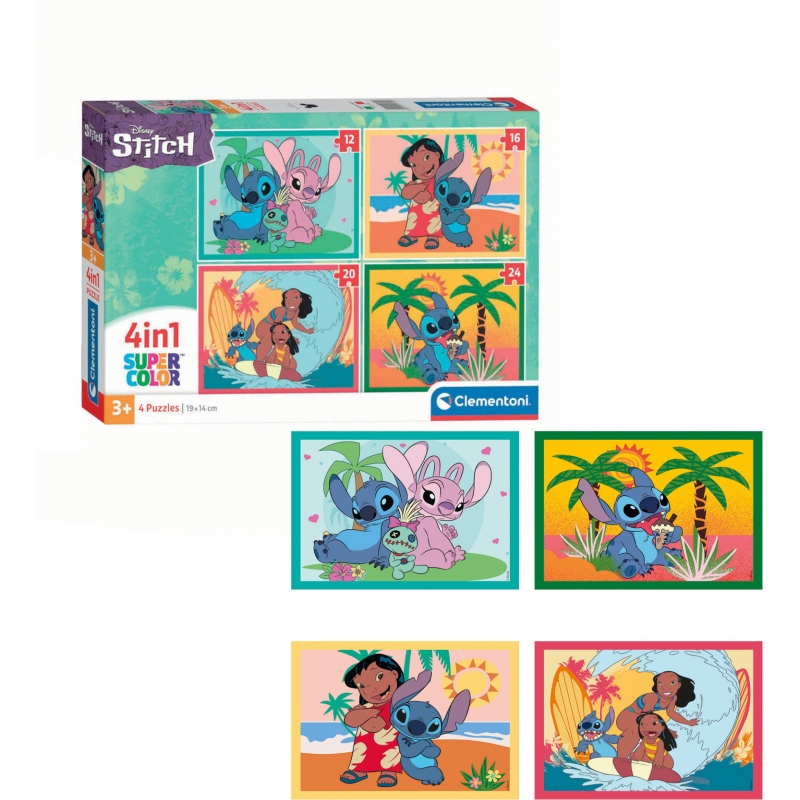 CLEMENTONI 21745 PUZZLE 1 X 12 + 1 X 16 + 1 X 20 + 1 X 24 PIEZAS DISNEY STITCH