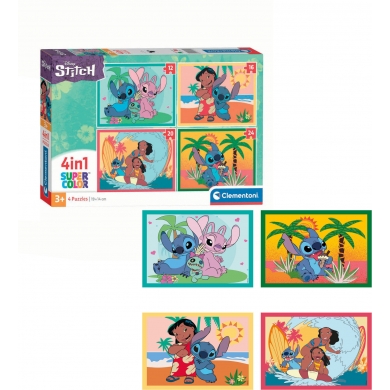 Clementoni Disney Stitch Puzzle 24 Piezas, Contiene 1 puzzle de 12 piezas, 1 puzzle de 16 piezas, 1 puzzle de 20 piezas y 1 puzzle de 24 piezas. Favorece el desarrollo de la motricidad fina y la coordinación óculo manual; además de fomentar la memoria y le concentración. Medidas: 28.7 x 19.2 x 3.5 cm. Este regalo no requiere pilas.