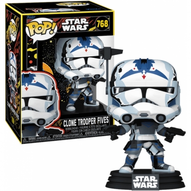 Celebra el fandom más estelar con POP! Clone Trooper Fives™ (Retro). ¡Pide refuerzos añadiendo este soldado a tu colección de Star Wars: The Clone Wars™! El cabezón de vinilo mide aproximadamente 11,6 cm de alto.