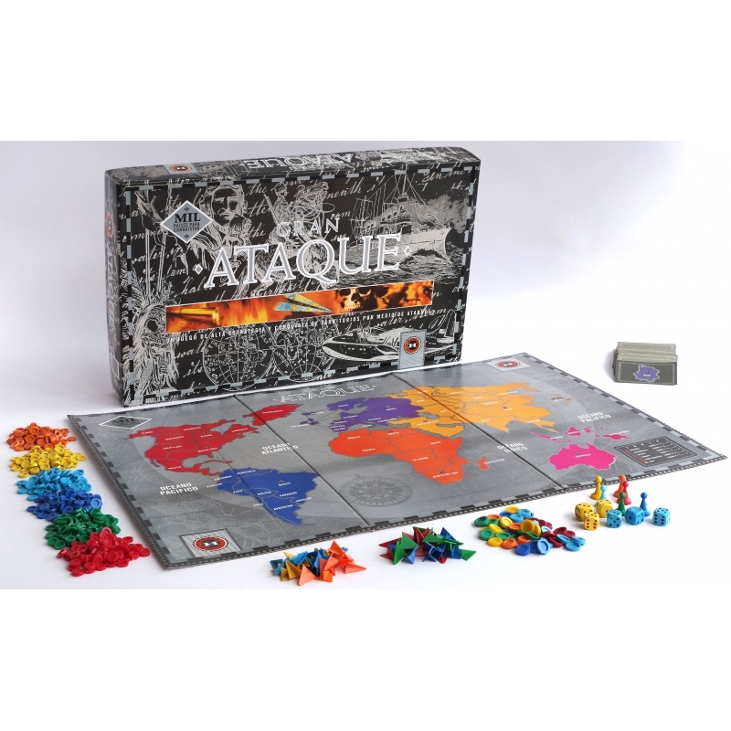 Gran ataque, Un juego de alta estrategia y conquista de territorios por medio de ataques. Este juego invita a descubrir lo emocionante y entretenido que resulta desarrollar estrategias de guerra, para conquistar territorios derrotando a tus adversarios. Medidas 55x35 cms. Este juguete no requiere pilas.