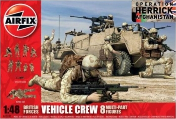 Contains eight unassembled, unpainted figures, vehicle not included. Please Note: The Driver, Passenger and Top Gunner figures supplied in this set have been designed to fit the Airfix Jackal and Coyote. They can be made to fit into the Airfix Snatch Land Rover and WMIK, but they will require some modification in order to do so, therefore only modellers with some experience should attempt this.