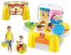 Piso didáctico con set de masas para que el niño(a) juegue descubriendo y creando todo lo que su imaginación proyecte a través de la manipulación de moldes y masas. El piso al abrirse se transforma en una mesa de trabajo. Este juguete no requiere pilas. Medidas 40x40 cm.