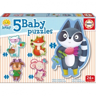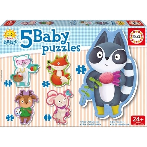 Estos 5 puzzles de animalitos vienen con grandes piezas, gruesas y fáciles de manejar que ayudan a desarrollar la destreza con su montaje.