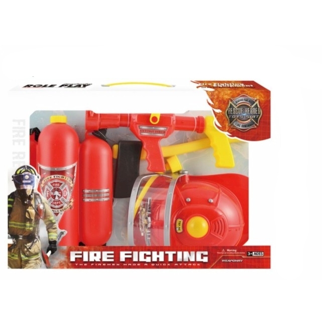 Juego de rescate de extinción de incendios de 3 piezas. Incluye, equipo de hidratante de extinción de incendios, casco de bomberos de juguete para niños. Medidas 58.5x5.5x40 cms.
