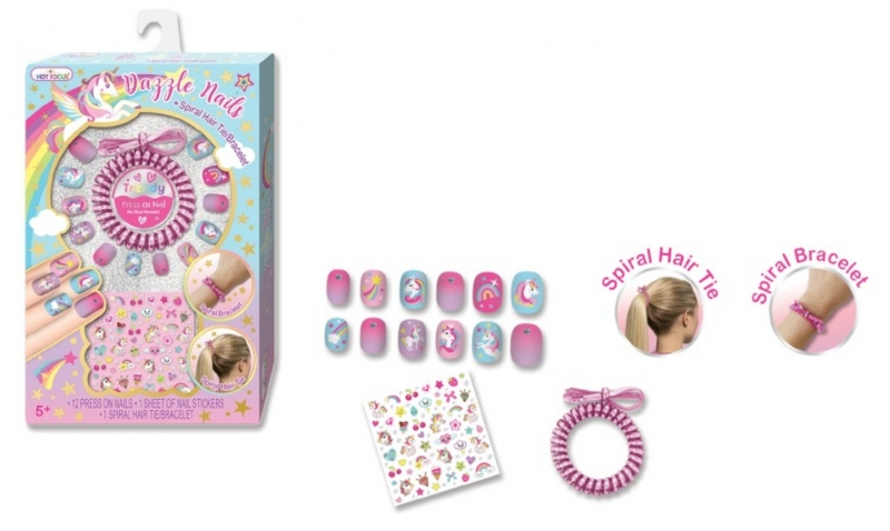 HOTFOCUS 030UC DAZZLE NAILS + SPIRAL HAIR TIE BRACELET UNICORN