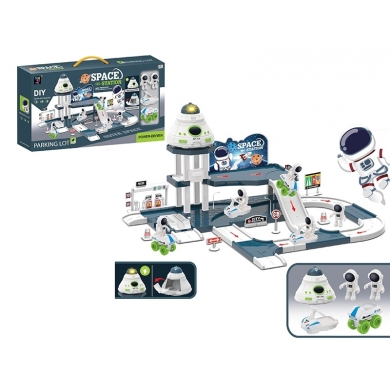 Estacionamiento de la estación espacial, Estación espacial incluye estacionamiento de reabastecimiento de combustible de la estación espacial; dos astronautas; vehículos lunares; lanzadera; las señales de tráfico. Medidas 26x55 cm. Requiere 2 pílas de reloj, ya incluidas.