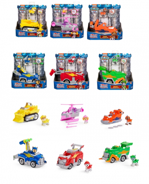 Paw Patrol Caballeros Vehículos, ¡Únete a los cachorros Paw Patrol para misiones emocionantes con sus vehículos de lujo transformables. Los vehículos están inspirados en dragones y tienen una emocionante transformación con una herramienta de rescate. Equipados con sus armaduras, los cachorros Paw Patrol están listos para salvar el día en Barkingburg. Imagen Referencial Usted al seleccionar este código recibirá sólo uno de ellos según disponibilidad. Este juguete no requier