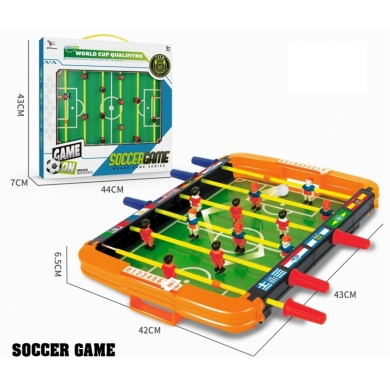 Niños y adultos pueden jugar, de forma sencilla y fácil de operar. Es popular entre niños y adultos. Contiene 2 balones, 2 equipos y 12 jugadores, tabla de puntuación, banderas nacionales, 4 ventosas.El eje es suave y fácil de maniobrar y patear. El agarre tiene un diseño antideslizante, el eje puede girar 360° y la cancha es suave y sin fricción.El mini palo de billar portátil tiene un tamaño que ahorra espacio y es adecuado para cualquier lugar o familia, como la sala de juegos de los niños. Un juego divertido y desafiante.Medidas 43x7x44 cms. Este juguete no requiere pilas.