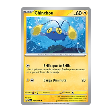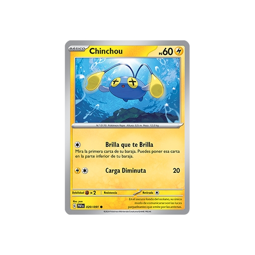 POKEMON DESTINOS DE PALDEA CARTA CHINCHOU COMA?N ha sido agregado al carro de compras.
