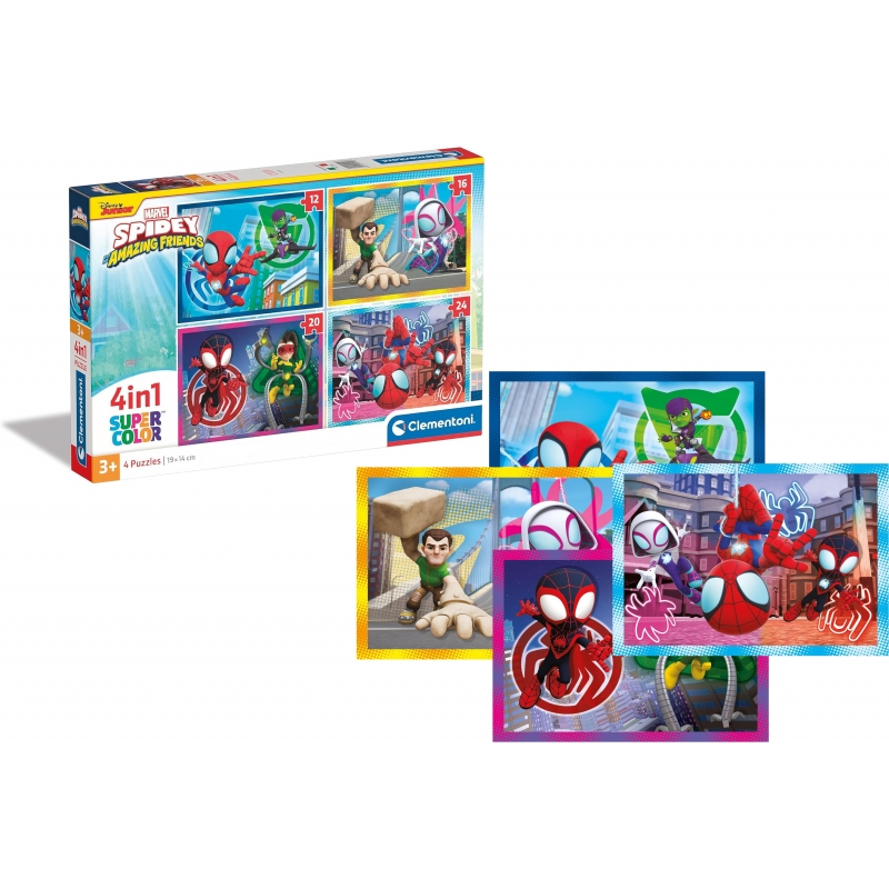 Clementoni Marvel Spidey y sus sorprendetes amigos Puzzle Progresivo 4 en 1, Puzzle de los niños 4 en 1 con 4 imágenes diferentes y bancos diferentes. 1 rompecabezas de 12 piezas, 1 rompecabezas de 16 piezas, 1 rompecabezas de 20 piezas y 1 rompecabezas de 24 piezas