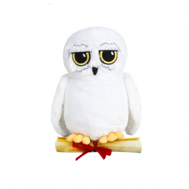 Este adorable peluche representa a Hedwig, la icónica lechuza de Harry Potter. Presenta detalles bordados de alta calidad, incluyendo sus expresivos ojos dorados. Su encantador diseño lo hace perfecto tanto para fans como para niños. También incluye una carta que alude a la carta de admisión a Hogwarts de la historia original. Esta carta es enviada por el Colegio Hogwarts de Magia y Hechicería. Hedwig es uno de los personajes más queridos del universo de Harry Potter, y su figura es reconocible incluso para quienes no son fans de la serie. Este peluche tiene un gran atractivo visual y emocional, ideal para destacar escaparates o vitrinas temáticas. Su tamaño compacto también lo convierte en un regalo coleccionable asequible y de gran volumen.