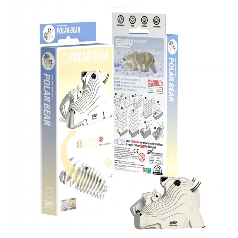 Colección de divertidas figuras de cartón montables en 3D. Diseñados en Nueva Zelanda los modelos Eugy pretenden dar respuesta a una creciente demanda de padres que buscan productos divertidos, con valores educativos y respetuosos con el medio ambiente. Fácil de construir: