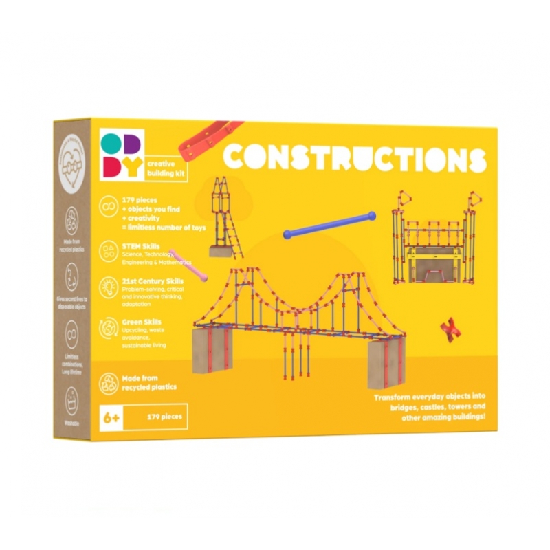 El kit está diseñado para fomentar la creatividad, el aprendizaje y la conciencia ecológica. Al transformar los artículos cotidianos en invenciones divertidas, los niños aprenden el valor de reutilizar y reciclar mientras se divierten. Fomenta la creatividad y el desarrollo de tu hijo/a con el kit de construcción ODDY de 179 piezas, donde el único límite es su imaginación.