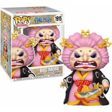 ¡Zarpa con Charlotte Linlin, la aterradora capitana de los Piratas de Big Mom! ¡Amplía tu colección de One Piece añadiendo esta Super Pop! Big Mom (Kimono) a tu escorbuto! Hay una probabilidad entre 6 de que encuentres a la Big Mom Pop! con su cabello de fuego. La figura de vinilo mide aproximadamente 17,1 cm (6,75 pulgadas) de alto.