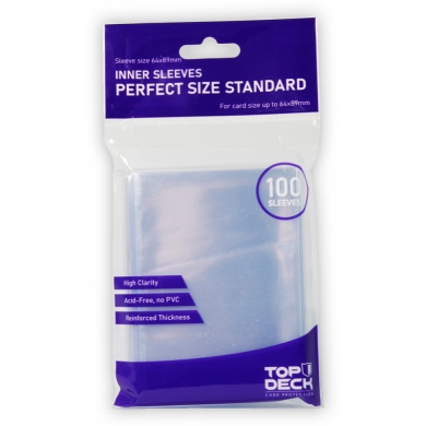 Características: - Contiene 100 Protectores Interiores - Tamaño TCG Standard 64x89mm (se utiliza como primera capa para cartas tamaño standard) - Acabado brillante con esquinas reforzadas - Color: Transparente